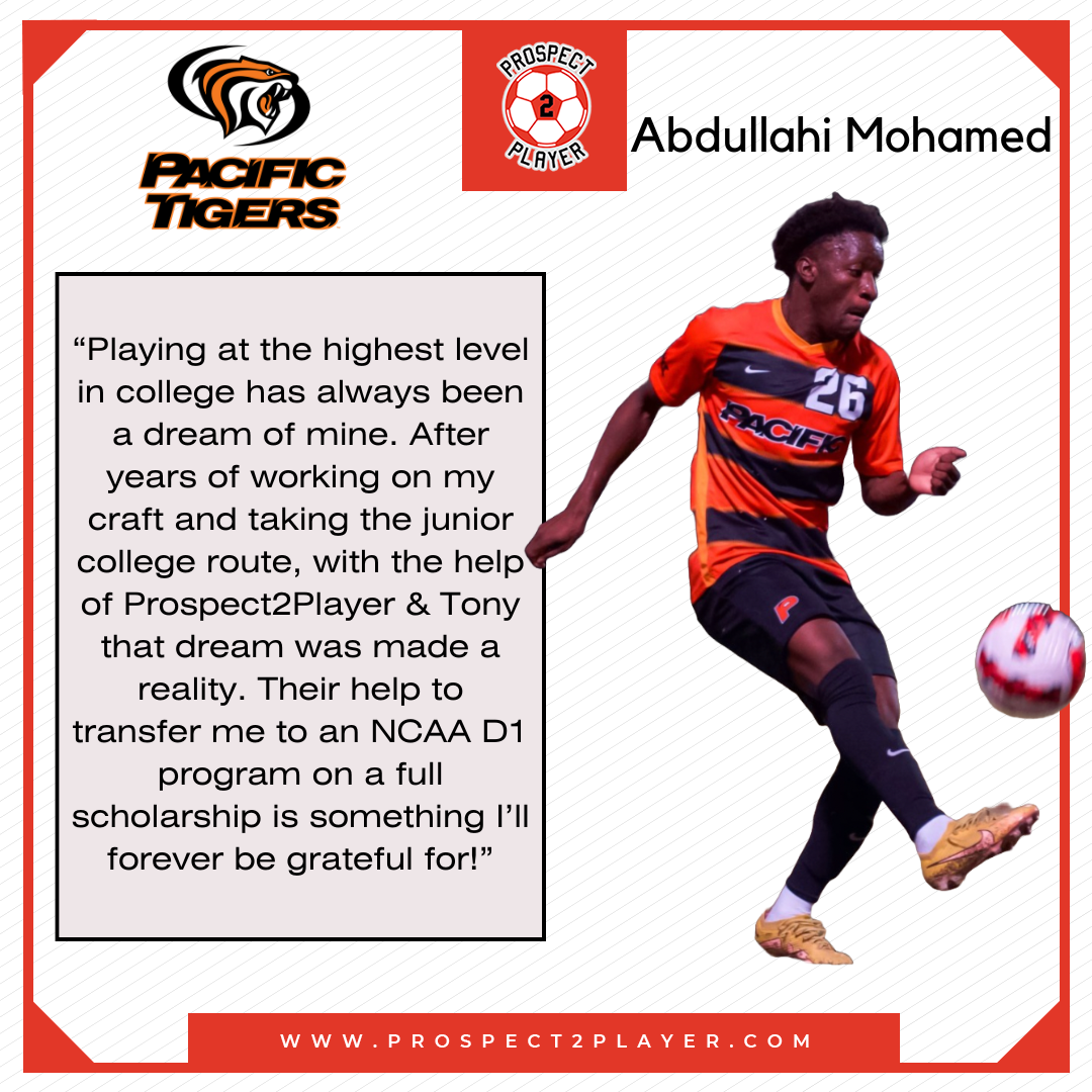 “For my whole life all I have known is soccer, and I’ve dedicated a lot to the sport I love. All my commitment & dedication paid off as I was able to receive a full ride to a D1 school and enjoy an amazing experience. Thank you to Prospect2Player & Tony for the support & belief in me to get me to live out my dream!”